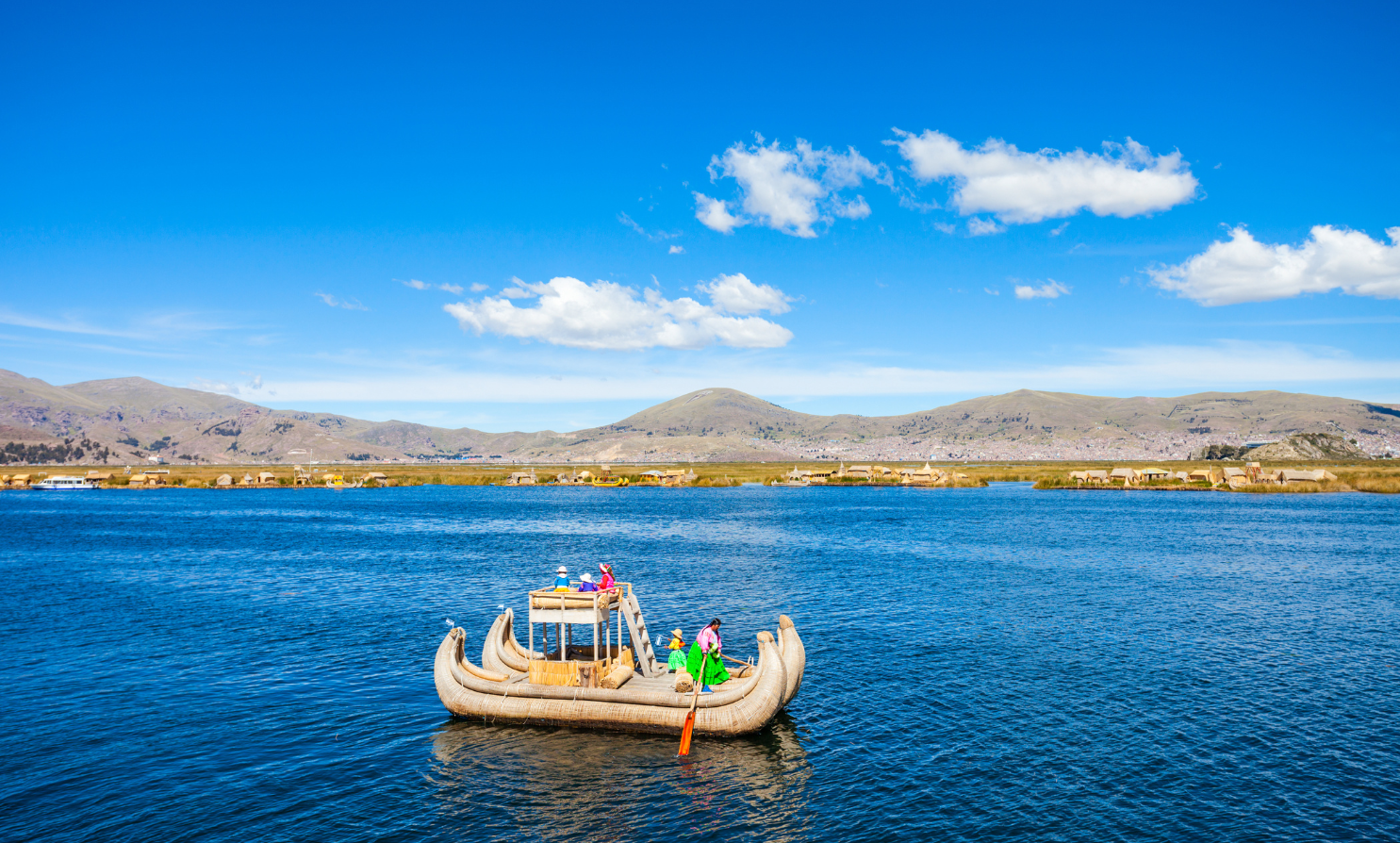 The Uros of Titicaca are one of its top attractions – these islands are made by the Uros people out of the local reed or tortora. For the Uros the reed is everything – they eat it, make boats out of it, build homes and continuously reinforce the spongy island mass with it.